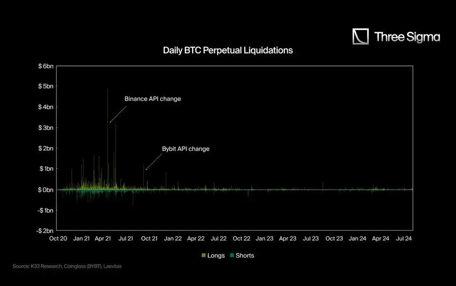 This contrast is particularly evident when considering historical events: the 2020 COVID Crash, while a major market event at the time, now appears relatively small, as there was less leverage participation then. As leverage has proliferated, the absolute and relative scale of liquidations has grown, but the limitations of official data streams may have distorted traders' and analysts' perceptions of systemic risk.