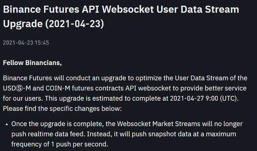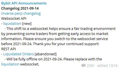 The official reasons behind these API changes are: "to provide a 'fair trading environment'" (Bybit, September 2021) and "to optimize user data flow" (Binance, April 2021), but some believe this is just for public relations purposes, to avoid causing excessive panic, and also to retain their own real data.
