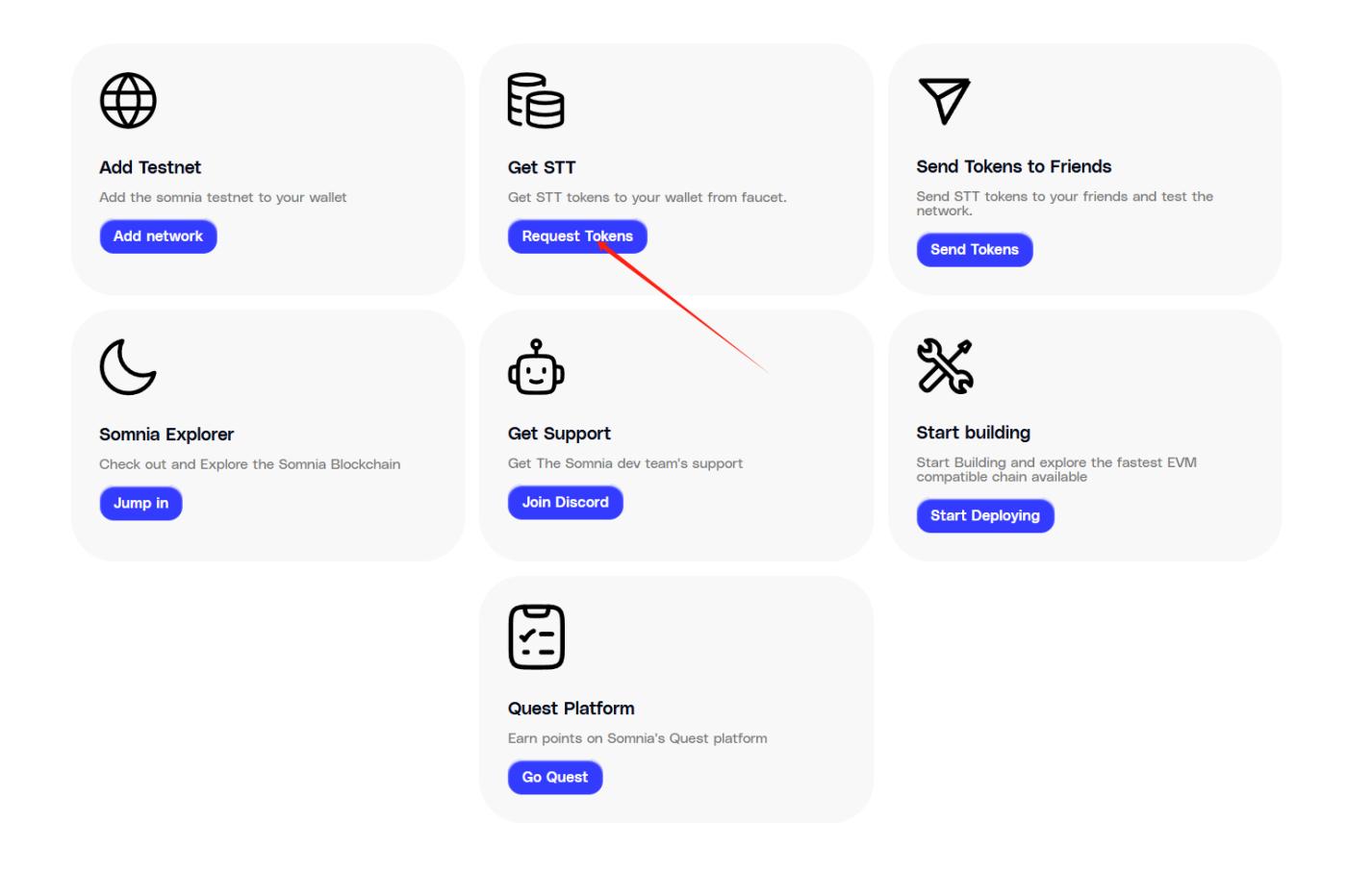 STEP 2. Scroll down the page and click "Get STT" to claim test tokens (once every 24 hours).