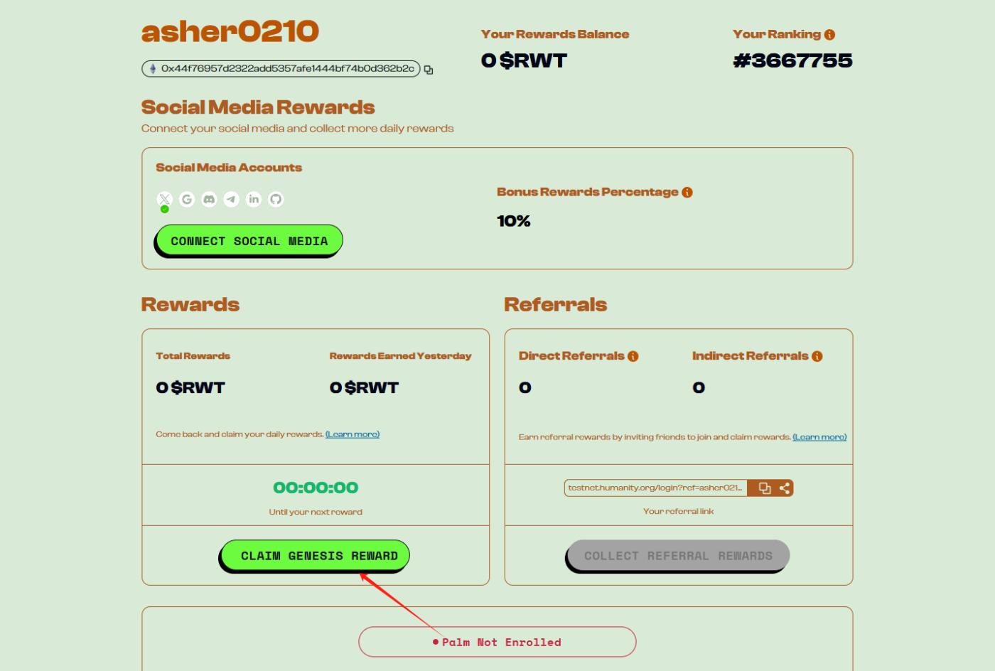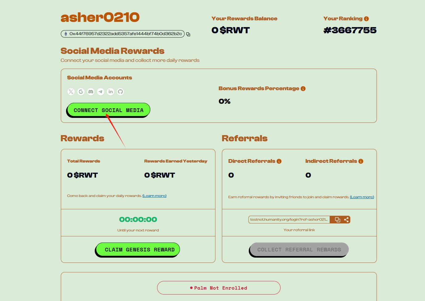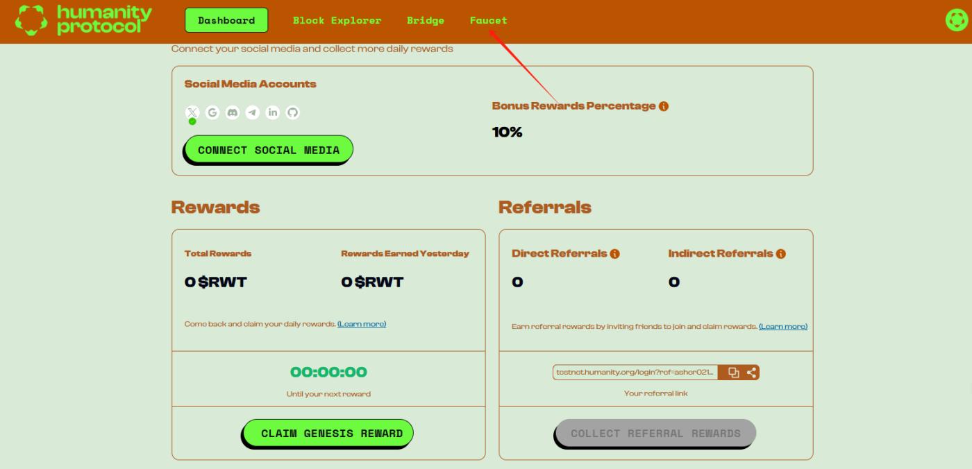 STEP 1. Enter the interactive link (https://testnet.humanity.org/), select "CONNECT WALLET" to log in and automatically add the testnet.