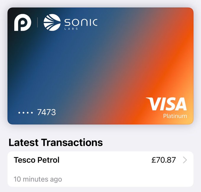 Just used my Sonic Card to buy petrol 🙌 Topped my wallet up with $USDC and then paid via Apple Pay, simples👌 Conversion rate was good and even with the fees it was cheaper than sending to an exchange and paying the trading and withdrawal fees I would normally have to pay.