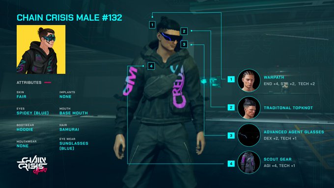 Look back at Chain Crisis Male Specimen NFT #132 and their unique in game look.🌌 Ready to dominate Warpgate City? 🌃 The Legendary Poshpunks are coming!🔔