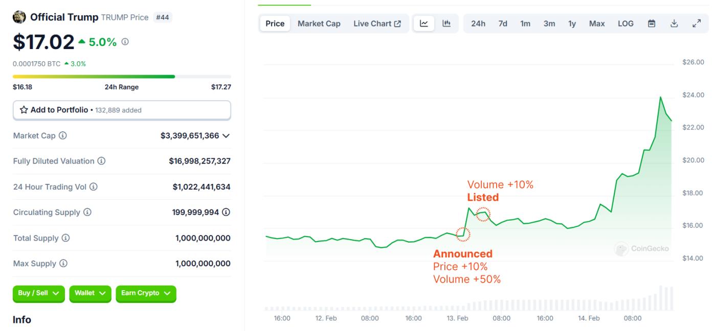 - Taking $TRUMP as an example, after Upbit announced the listing:
