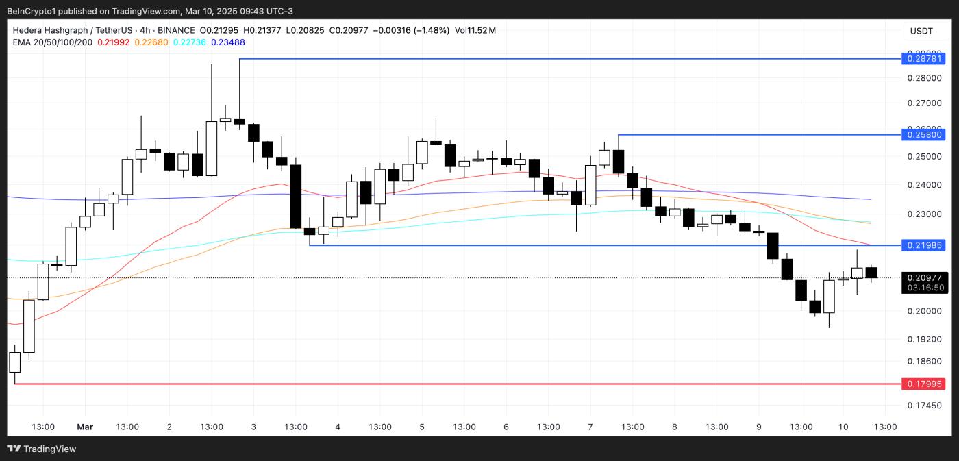 HBAR Price Analysis. Source: TradingView.If HBAR can establish an uptrend, it could look to test key resistance levels at $0.219 and $0.258, with a stronger rally potentially pushing it toward $0.287. However, if the current price retracement deepens, it may face additional downside risk.