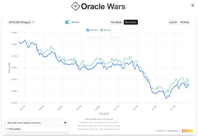 How Much Latency Do High-Frequency Oracle Push Feeds Actually Have? Sharing a preview of a new feature that compares data from high-frequency oracle push feeds (under 30-second heartbeat intervals) with granular off-chain spot pricing data (e.g., sourced from Binance). The