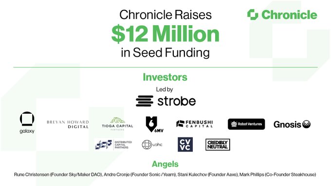 Excited to announce that Chronicle raised $12M in Seed Funding, led by @strobefund, to build infrastructure for the next wave of institutional adoption. 🧵