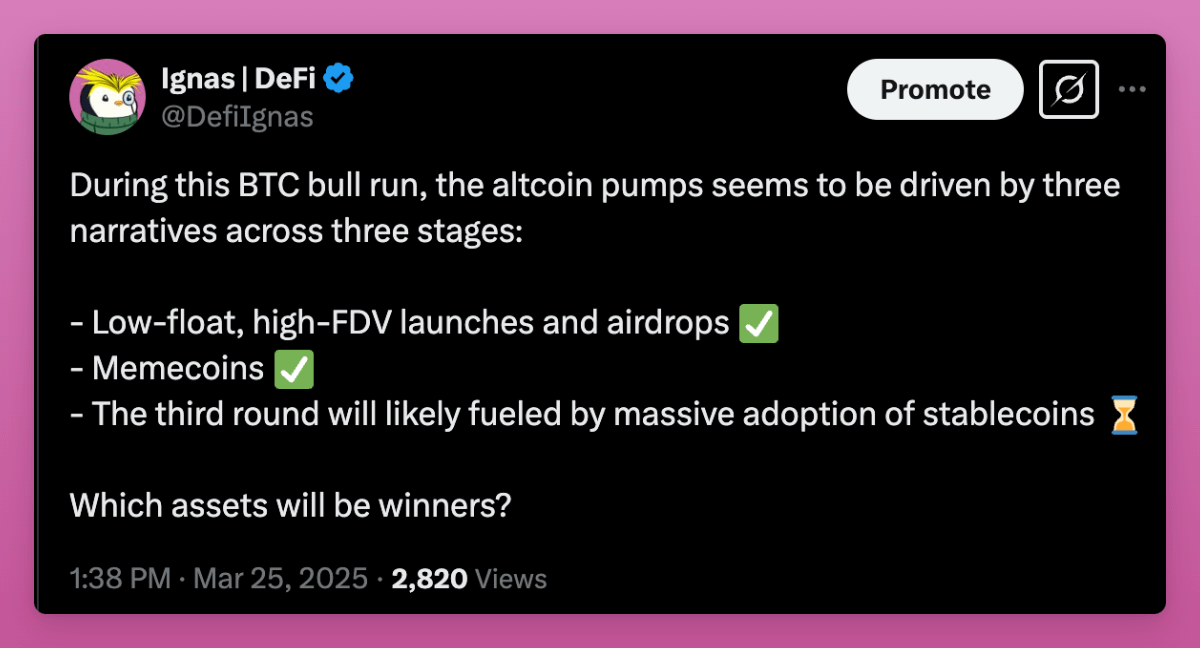 Many now believe that the next altcoin pump will be fueled by increased institutional adoption, particularly of stablecoins.