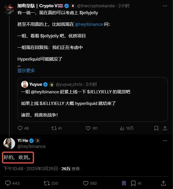 By quickly launching $JELLYJELLY perpetual contracts, CEX attracted a large number of speculators into the market, driving up the token price and indirectly increasing the risk of losses in Hyperliquid's vault.