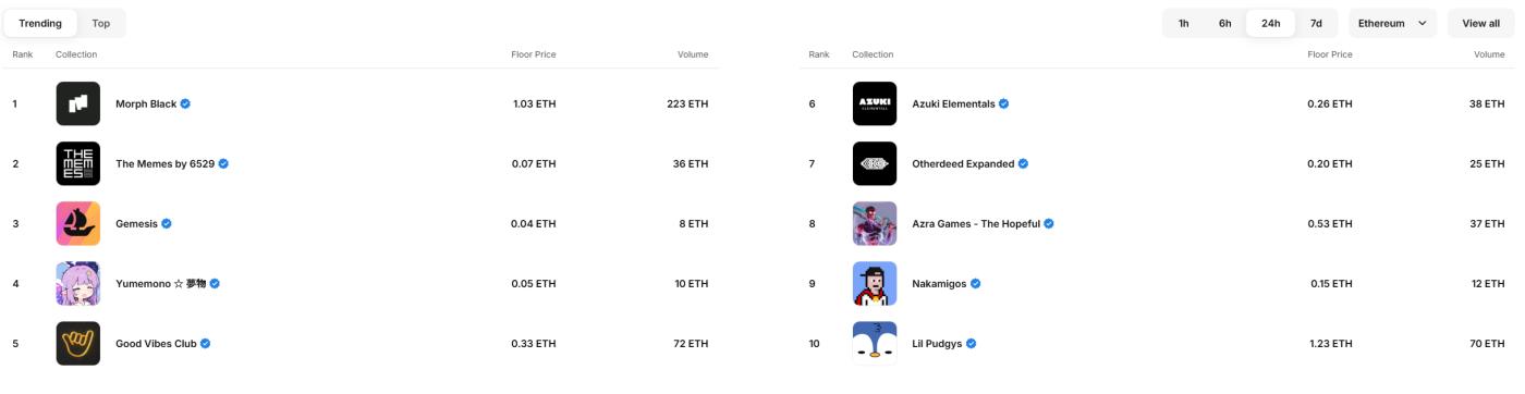 On March 28, the Morph Black Card, which boasts itself as "the first black card for young people," strongly broke through the floor price of 1 ETH today, becoming a hot new star in the ETH Non-Fungible Token market. As of the time of writing, according to Opensea's market data, since the mint opened at 8 pm on March 27, the Morph Black Card NFT series completed 274 transactions in the secondary market, with a 24-hour trading volume reaching 223 ETH, surpassing a series of old blue-chip NFTs such as Pudgy Penguins, CryptoPunks, and BAYC. During this period, some community members even mistakenly purchased counterfeit Morph Black Card NFT collections due to FOMO emotions, resulting in losses of up to 0.5 ETH.