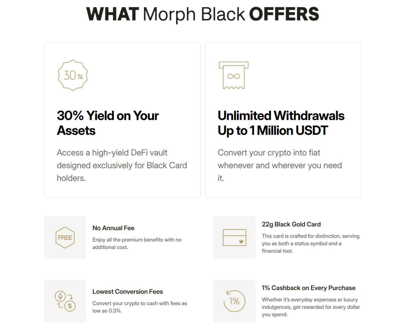 On February 25, Morph, a global consumer-level public chain backed by Bitget, officially launched Morph Pay, a comprehensive financial ecosystem that integrates Web2 banking infrastructure with Web3 DeFi yield capabilities. The Morph Black Card is equivalent to Morph Pay Premium. On the Morph Black official website, Morph Black Card holders can enjoy the following benefits free of annual fees: