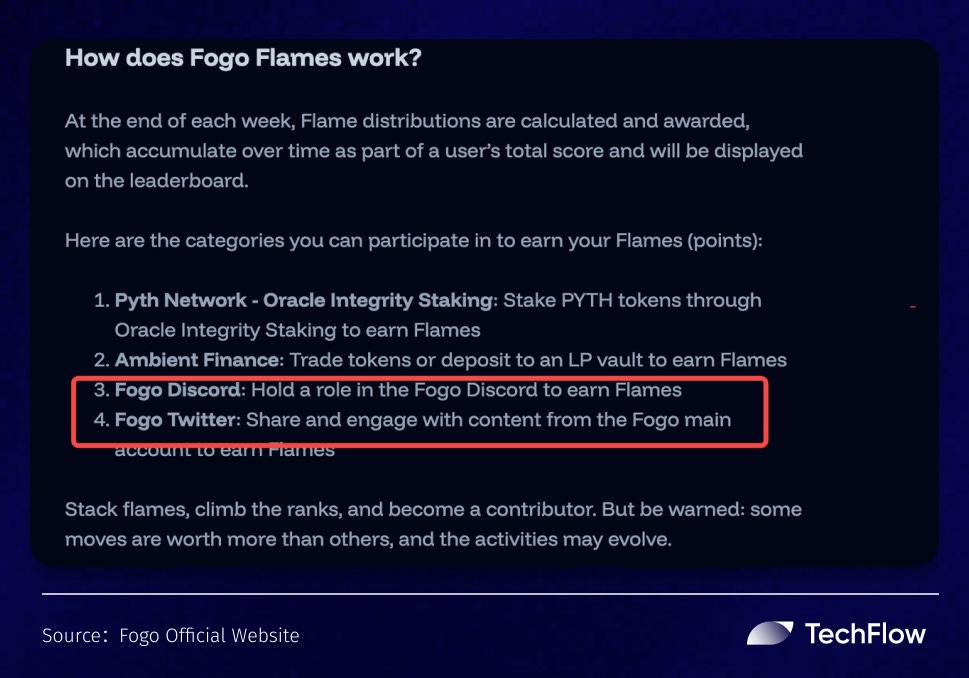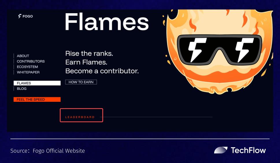 From the name, "Flames" is the continuous naming of the Firedancer client, symbolizing the vitality and power within the ecosystem. According to official information, Flames is a form of points, which may be exchanged for Fogo tokens or other ecological rewards in the future.