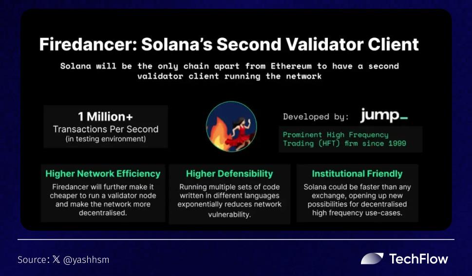 Firedancer is a high-performance client developed by Jump Crypto specifically for Solana. Its goal is to make the Solana network run faster and more stable.