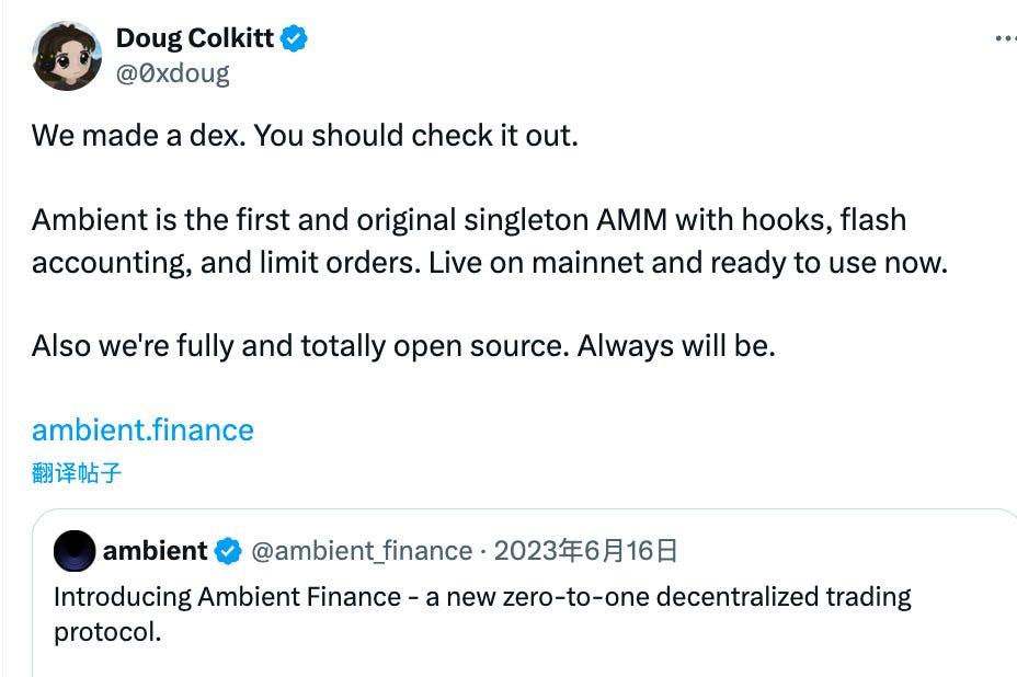 By looking through past posts , we can find that Douglas is quite knowledgeable about products in the industry such as DEX and perpetual contracts, and even designed a DEX called ambient.