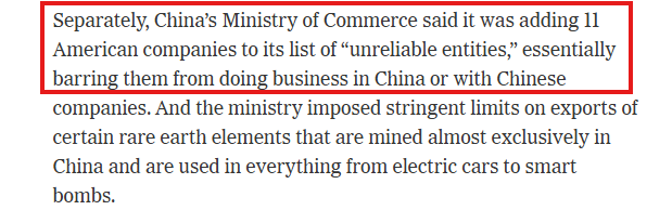 And, they added 11 American companies to their list of "unreliable entities" and 16 to their "export control" list.