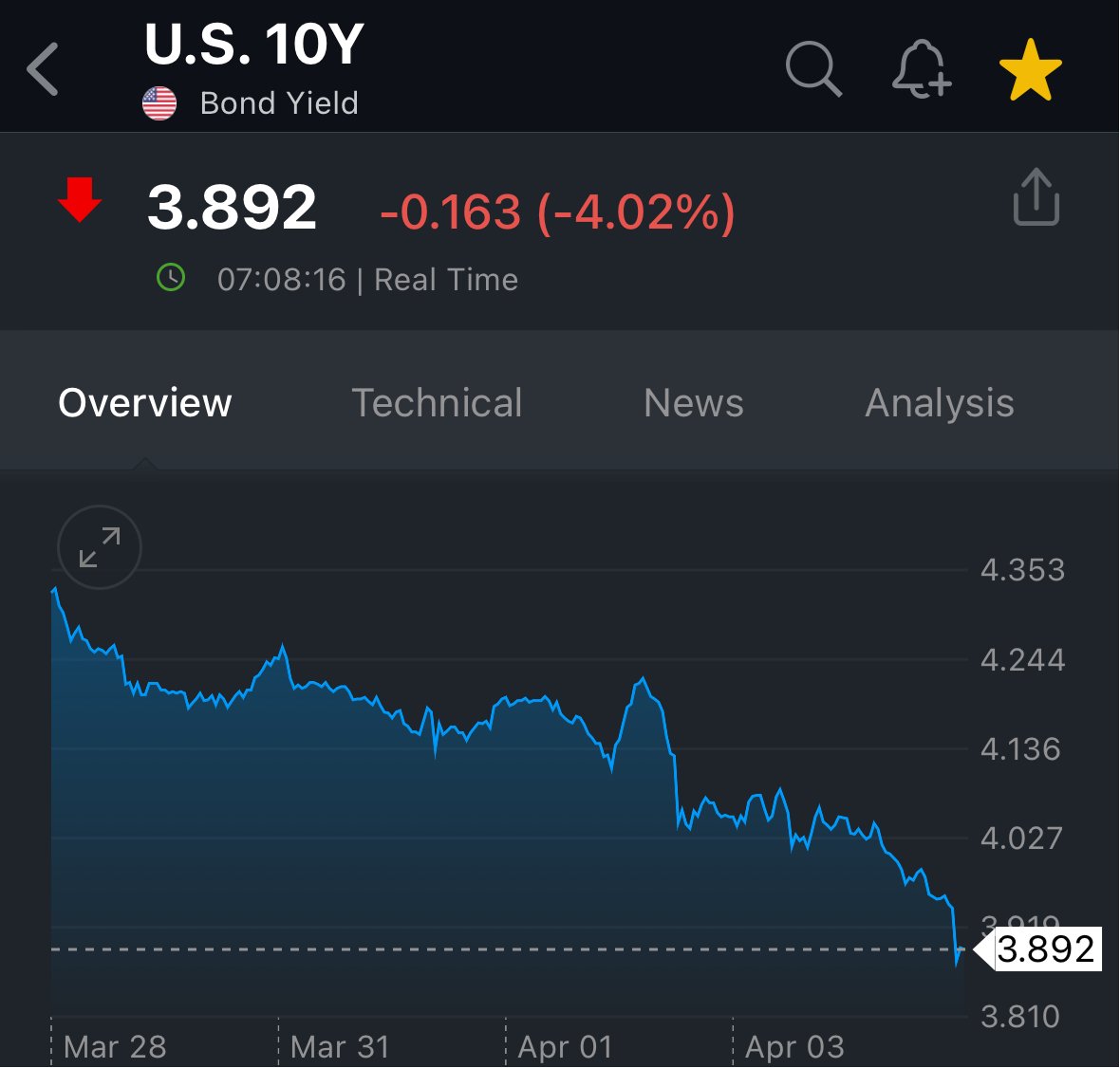 The yield on the 10-year is currently below 3.90% for the first time since September 22nd, 2024.