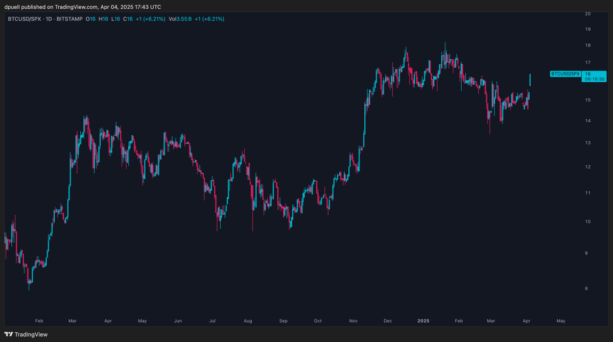 RT @dpuellARK: BTC/S&P500 Ratio. You don't see this that often.