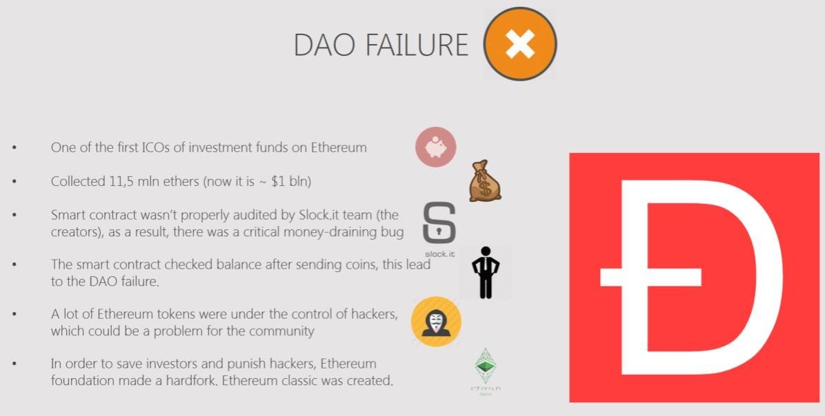 But problems soon followed. In 2016, an Ethereum project called The DAO was hacked and $60 million was stolen.