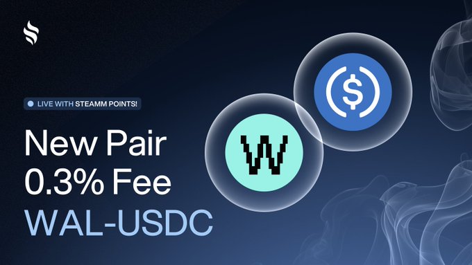 NEW POOL We've added a new WAL-USDC constant pool (CPMM) with has a fee tier of 0.3%. Deposit WAL and USDC to earn 3x rewards including STEAMM Points! Deposit below ⤵️
