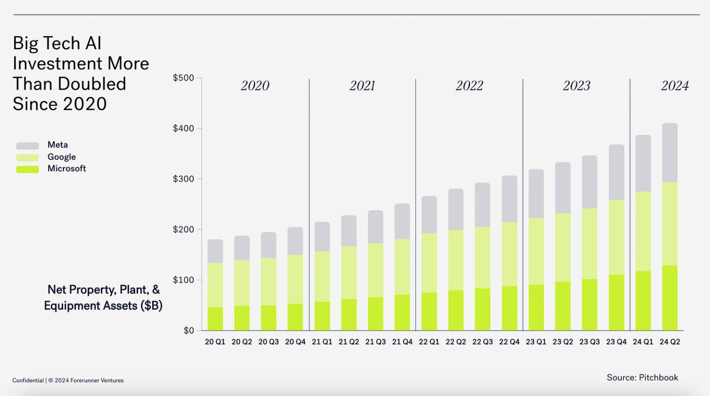 Training LLMs is a very capital-intensive venture, and you can see below just how much big tech companies have spent on infrastructure. The details will be covered shortly, but most (if not all) of this goes towards things like GPUs, data center buildout, maintenance, and other hardware requirements that contribute to the final product.