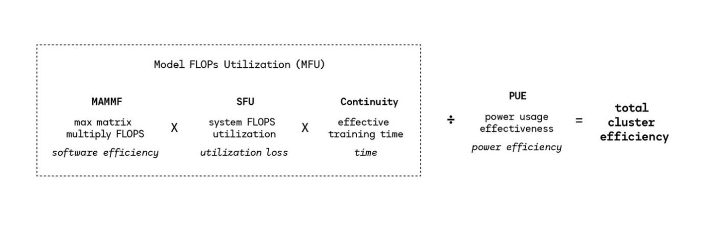 Many different variables go into determining the efficiency of a training run, involving both software and hardware, though most of this depends on FLOPs and measuring this in a really lengthy way.