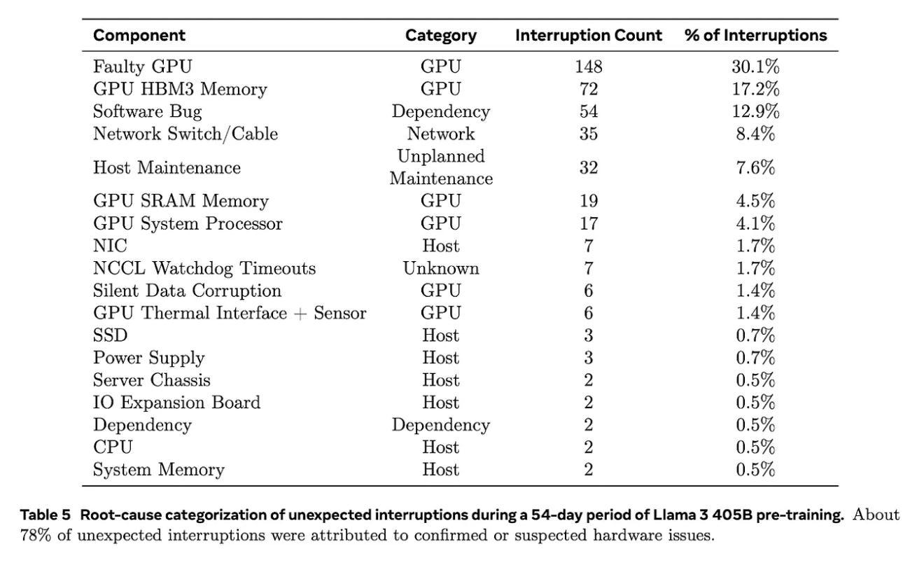 As you can see from the list, it could be an issue related to GPUs, networking, dependency, maintenance, or even something unknown - you can’t count anything out. Just owning the GPUs doesn’t give you the golden ticket to a flawless pre-training run.