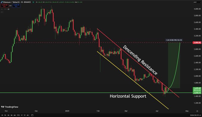 Once #Ethereum breaks above this descending resistance, it might easily pump up to $3,000🎯 🏛 Trade $ETH on LBANK: themoon.co/LBankNewUser 👉 0% Maker Fee + Unlock Up to 13,029 USDT Cashback (No KYC)