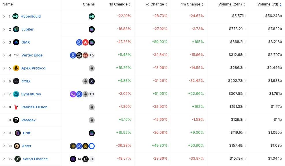 Here’s The Top 12 Perps Dex’s By 7 Day Volume (from @DefiLlama):