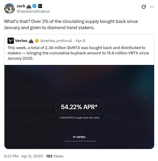 And… they continue to provide huge APR’s to $VRTX-stakers, and buy back significant amounts of tokens as well!