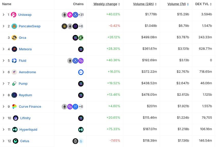 Here’s The Top 12 Dex’s By 7 Day Volume (from @DefiLlama):
