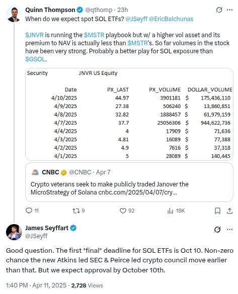 -Interesting story from @qthomp about Janover stock (“the MicroStrategy of Solana”), and update from @JSeyff that the first Solana ETF should be approved by October 10th:
