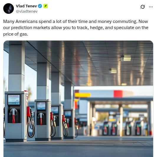 -Robinhood continues branching out in interesting new ways, for example via prediction markets on the price of gasoline: