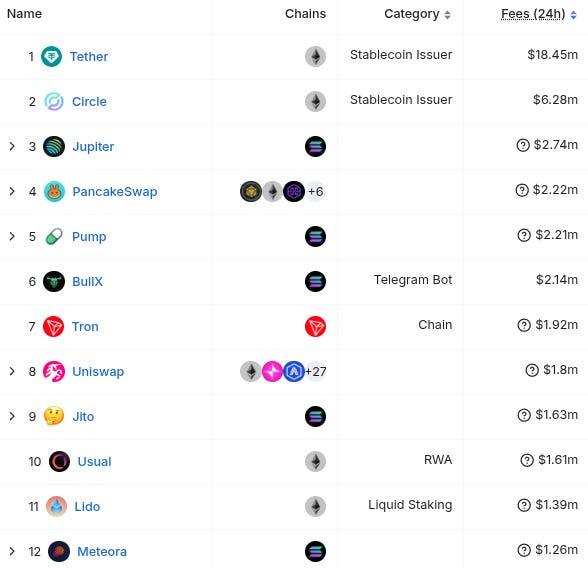 Here’s The Top Entities By 24 Hour Fee Generation (from @DefiLlama):
