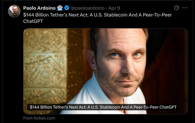 "While Tether’s U.S. stablecoin plans are still early and uncertain, it is forging ahead in an attempt to diversify into artificial intelligence" Tether is pivoting to AI because it's easier than getting an audit or creating a new US dollar stablecoin that can be audited 🤣