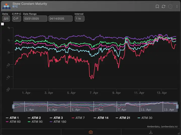 According to Amberdata, BTC's 30, 60, and 90-day options skew have all turned from negative to positive, indicating panic is subsiding and bullish expectations are returning.