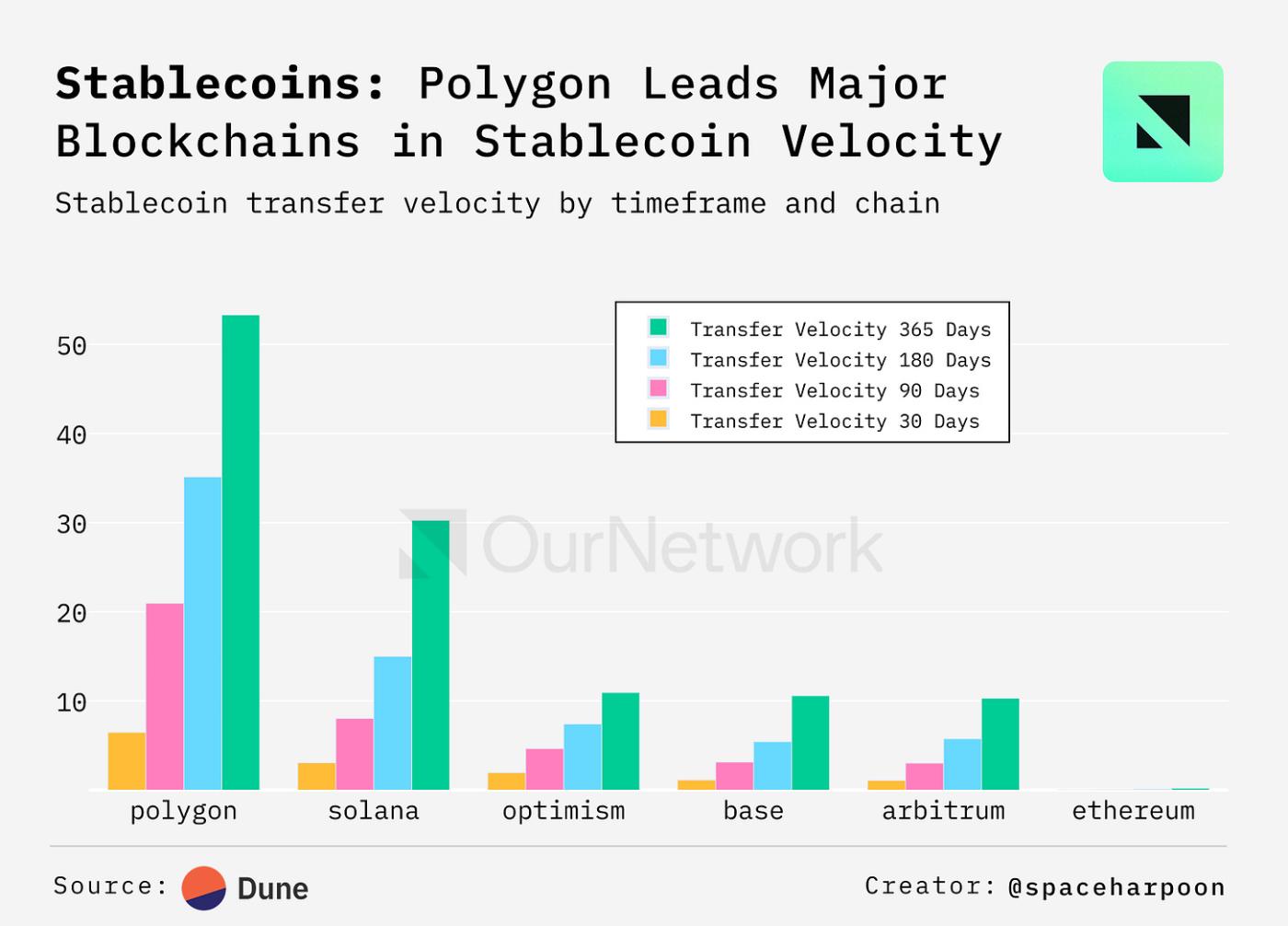📈 Polygon’s Stablecoin Velocity Beats Ethereum & Solana, Showing Efficiency & Challenging TVL as Top Metric for Chain Health