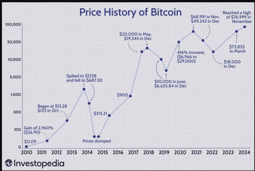 The OG cryptocurrency has experienced significant price surges over the years. Here’s a concise overview of these peaks: