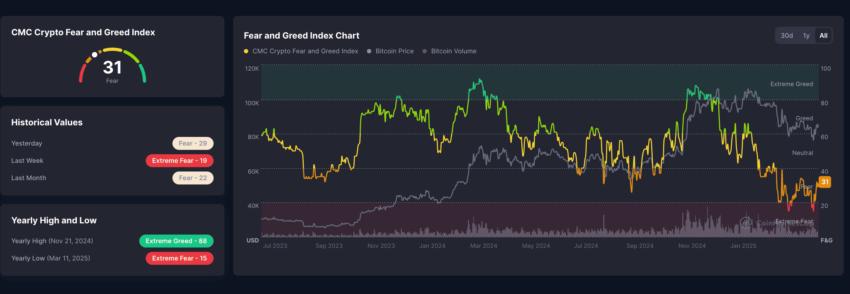 Tools like the Fear & Greed Index gauge investor sentiment. Extreme fear can indicate a buying opportunity, while extreme greed may signal a market correction. In March 2025, the index reached a “greed” level of 75, aligning with Bitcoin’s price nearing $100,000.