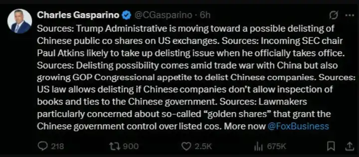Although there's a 90-day cooling-off period, no solution currently exists that would give investors and businesses more confidence in future planning. As Trump again raises tariffs on China to 145%, the situation is worsening. As revealed by a Forbes senior reporter, Trump might delist Chinese companies from US exchanges.