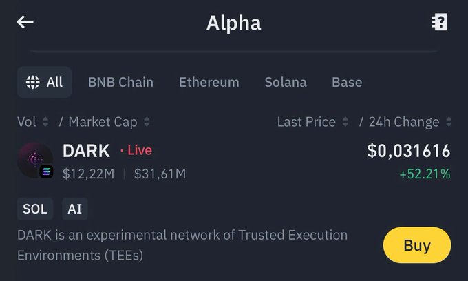🚨JUST IN: #Binance Announces the 40th batch of Spotlight Projects on Binance Alpha $DARK (@darkresearchai) has been selected as the 40th of Binance Spotlight projects.