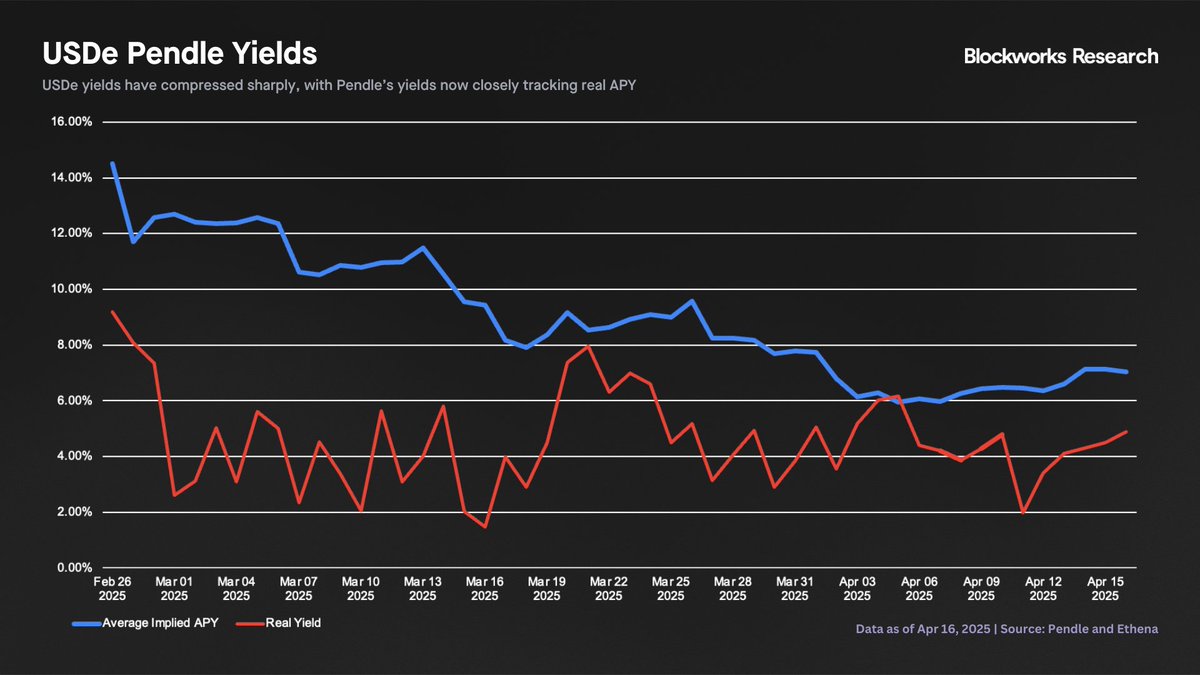 Currently, real yields and PT-implied APRs have nearly converged, with the PT discount pricing future yields at 7%.