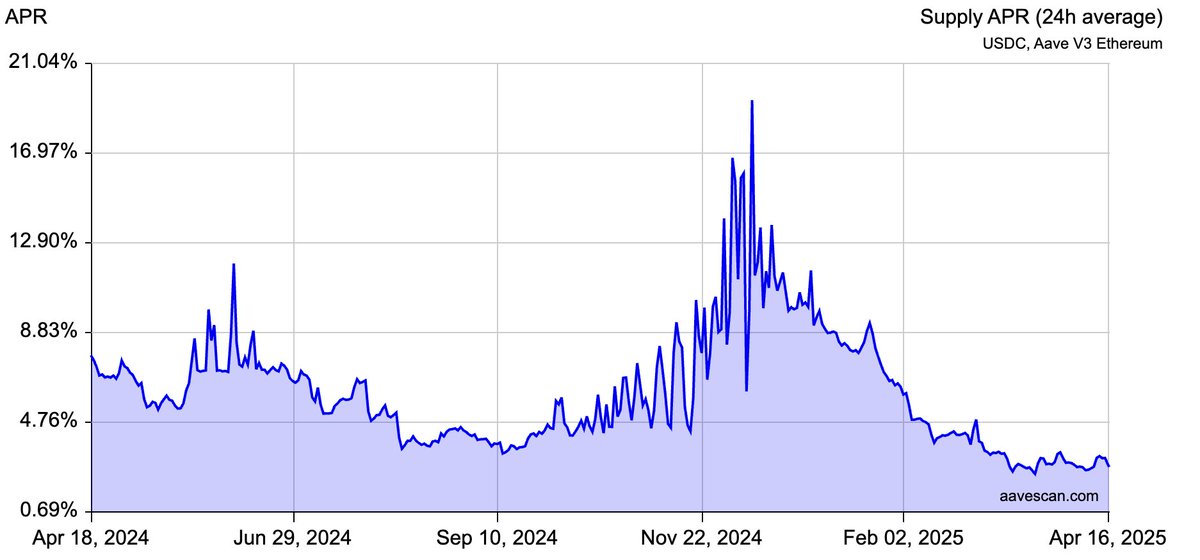 Current yields are significantly dampened, at sub-3%, a stark contrast to periods when yields reached ~10% APY.
