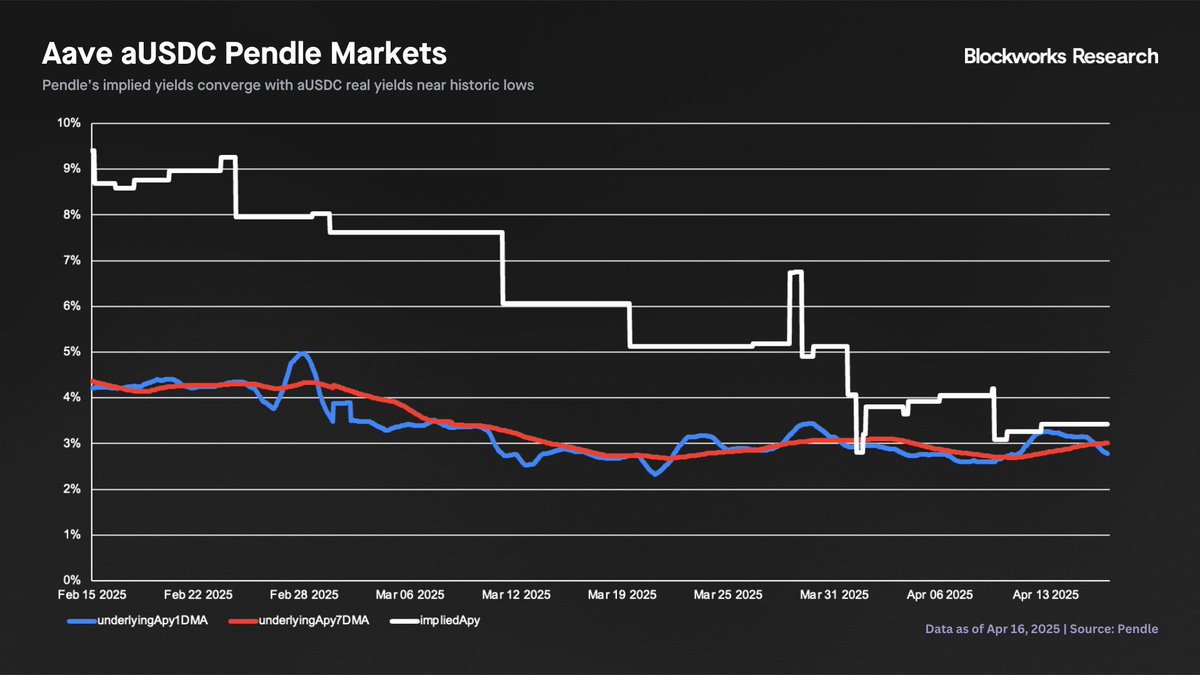 5/ On Pendle, traders can buy future yields of aUSDC at ~3% implied rate, gaining exposure to potential upside.