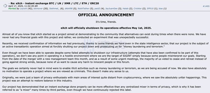 The crypto trading platform will cease operations on May 1st. Prior reports suggested that the platform was used to launder part of the stolen funds from . In the announcement on April 17th, most members of the management team voted to "stop operations and exit" in response to allegations that the North Korean hacker group Lazarus Group laundered approximately 14 from through this platform.