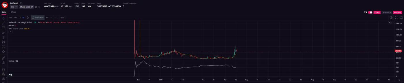 Due to Arthur Hayes' involvement, this wallet quickly gained visibility in the Bitcoin ecosystem. Last mid-year, Oyl launched a Bitcoin Non-Fungible Token project called "Airheads", which sparked controversy due to its relatively high minting price. In terms of NFT price performance, it was a "failed" project, but recently it has risen nearly 3 times due to the popularity of the Alkanes protocol.