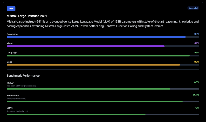 Mistral-Large-Instruct-2411 is an advanced dense Large Language Model (LLM) of 123B parameters with state-of-the-art reasoning, knowledge and coding capabilities.