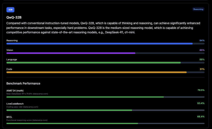 QwQ-32B is the medium-sized reasoning model, which is capable of