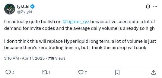 -Seeing increased excitement around @Lighter_xyz, good example c/o @0xlykt: