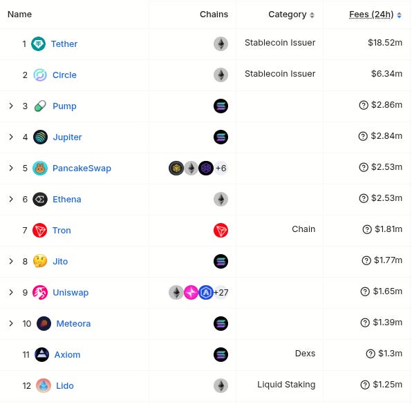 Here’s The Top Entities By 24 Hour Fee Generation (from @DefiLlama):