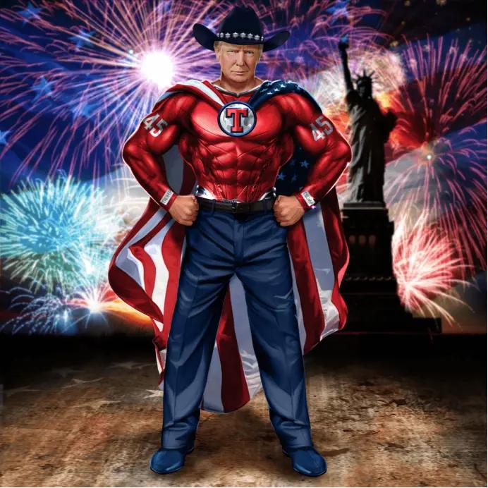 In contrast, Trump's own performance in the NFT project is more commercially rewarding. He launched the first batch of "digital trading cards" (Trump Cards) in December 2022, deliberately downplaying the "NFT" label. This set of cards creates an idealized image through illustrations - muscular, young and handsome, wearing Superman or cowboy costumes, with an exaggerated style that is out of touch with reality.