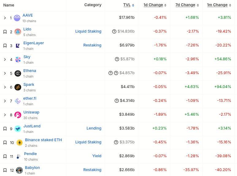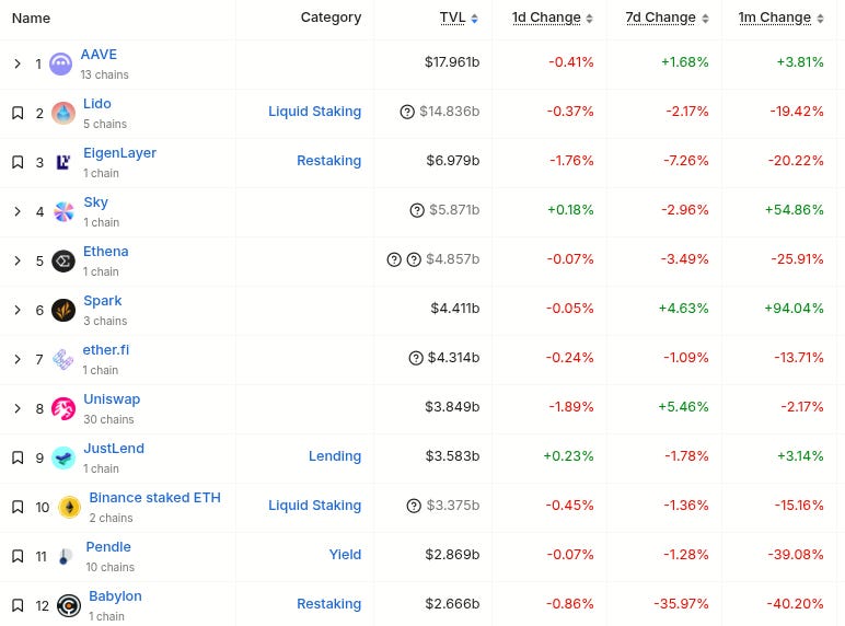 Here’s The Top 12 Protocol By TVL (from @DefiLlama):